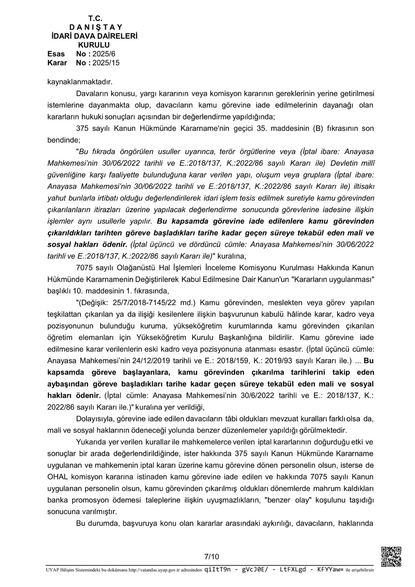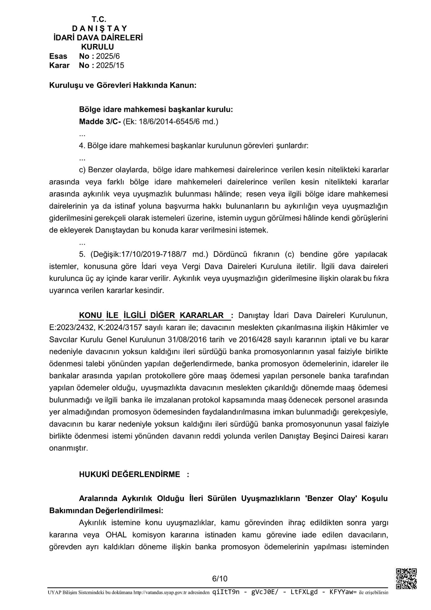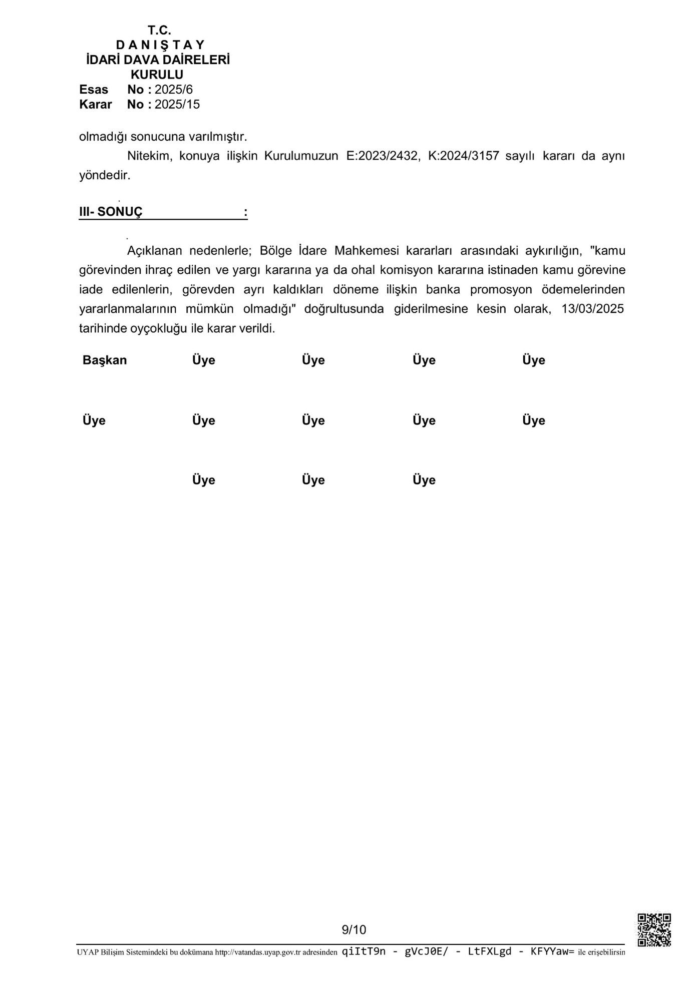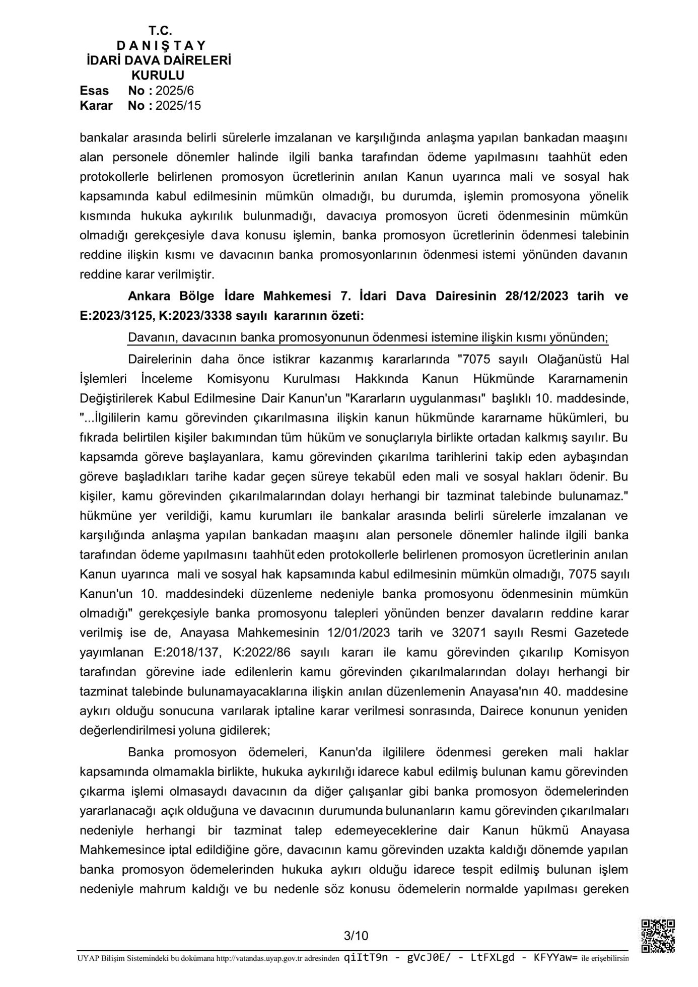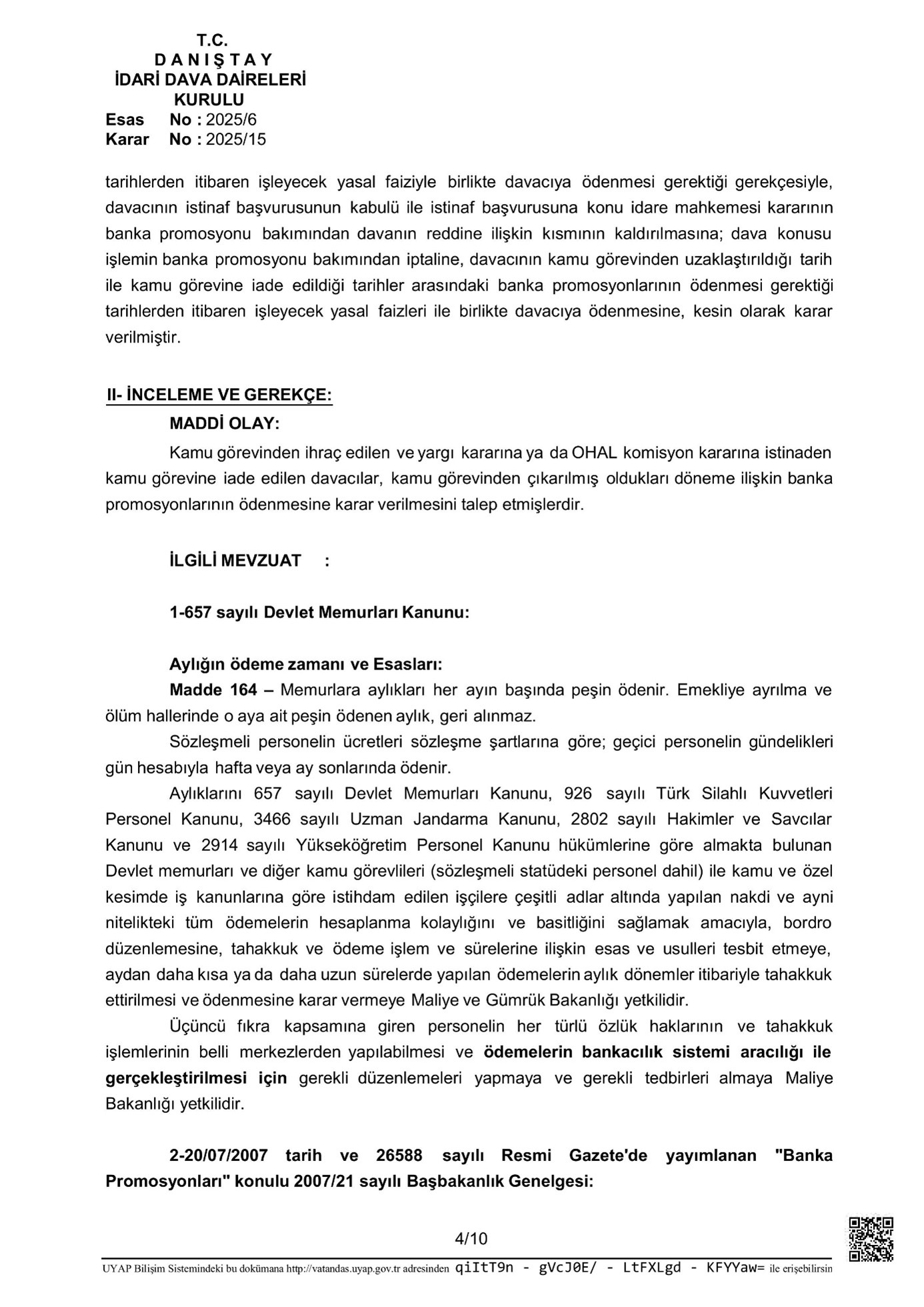 Bu çerçevede, Danıştay İdari Dava Daireleri Kurulu 2025/6 Temel numaralı belgede, kamu vazifesinden ihraç edildikten sonra misyona iade edilen bireylerin çalışmadıkları periyoda ilişkin banka promosyonu alma talepleri incelenmiştir.