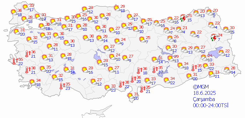 - İzmir: Sıcaklıklar 34 ila 36 derece ortasında olacak.