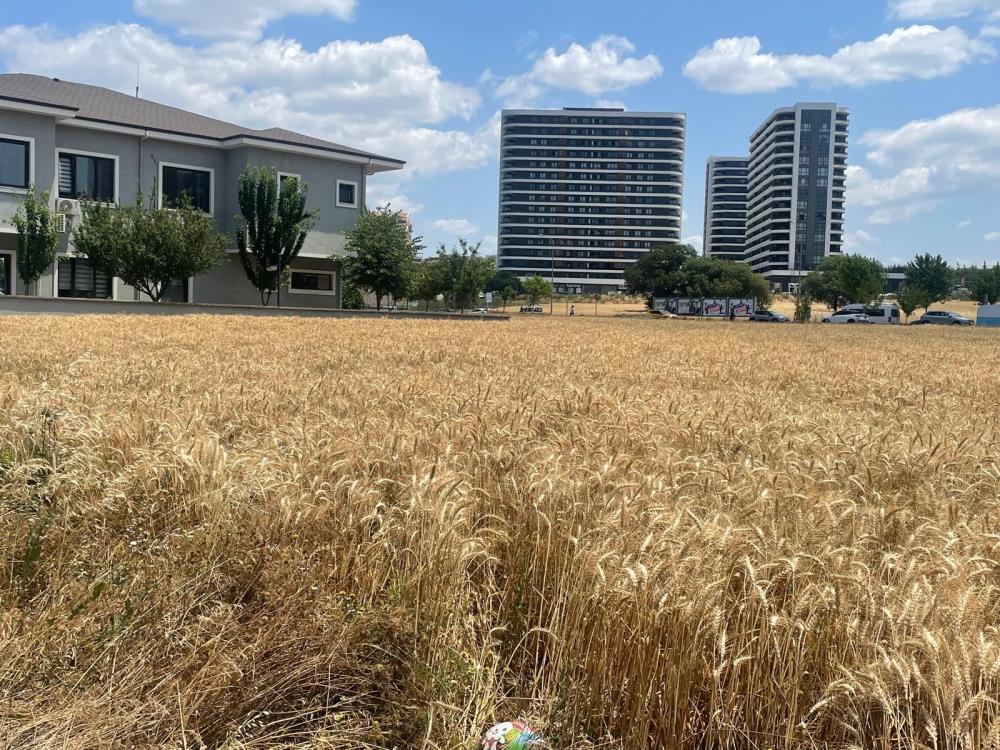 Lüks gökdelenlerin tam ortasında kalan ve imarlı dönümü 25-30 milyon lira olan alanda hala ziraî üretime devam eden üreticiler, 5 dönümde ekili alandan yaklaşık 3 ton buğday elde edip, kilosunu 13 liradan satarak 39 bin lira gelir sağlamayı hedefliyor.