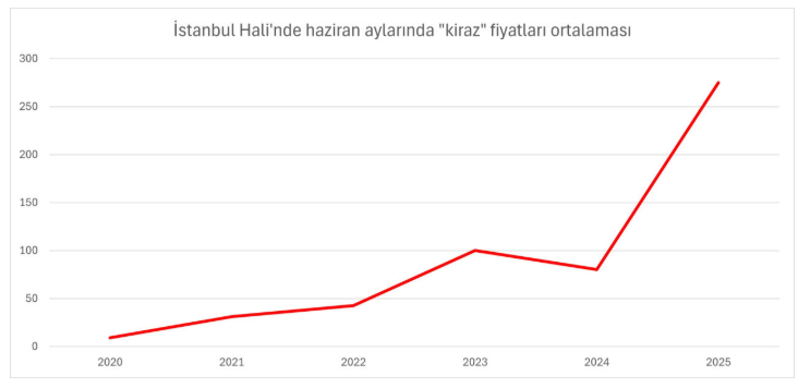 Tarım afeti olan don olaylarından çokça etkilenen kiraz fiyatlarının ise son 5 yılda haldeki değişimi şu biçimde oldu: