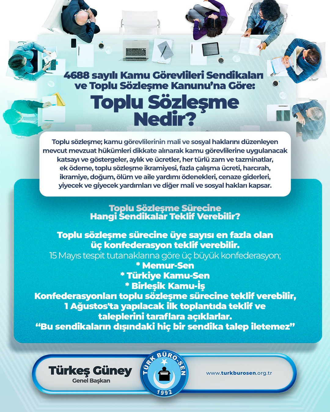 Türk Büro-Sen Genel Başkanı Türkeş Güney de toplumsal medya üzerinden yaptığı paylaşımda, toplu kontratın kamu vazifelilerinin mali ve toplumsal haklarının formlandığı en kritik süreçlerden biri olduğunu vurguladı. Güney, mevcut mevzuat kararları çerçevesinde katsayı ve göstergeler, tazminatlar, ikramiyeler ve öteki özlük haklarıyla ilgili taleplerin ayrıntılı biçimde değerlendirileceğini tabir etti.